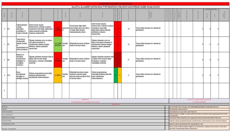 Birim Risk Kontrol Eylem Planı